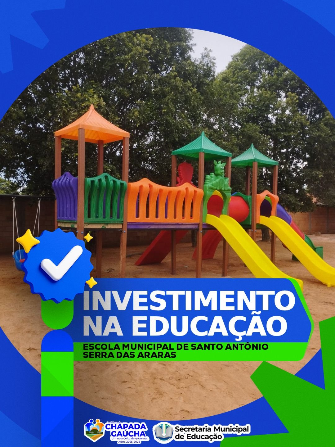 Durante o mês de janeiro, foram instalados novos brinquedos e playgrounds em diversas unidades educacionais do município. As melhorias contemplaram a Escola Municipal Santo Agostinho, a Escola Municipal Dário Carneiro, a Escola Municipal Santo Antônio, a Creche Criança Feliz (Sede e Anexo) e a Creche Municipal Arara Vermelha (Anexo).